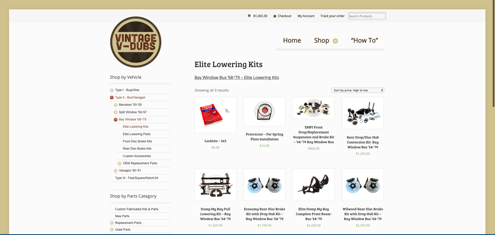 WordPress/Woocommerce site that sells custom suspension & brake kits/parts for classic Volkswagens.